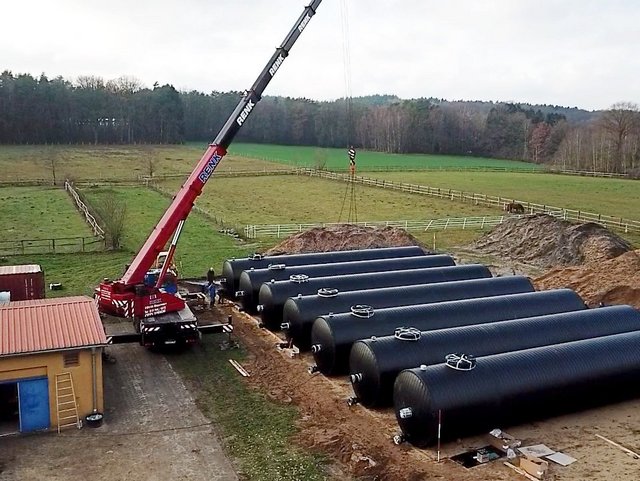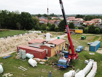 - Ein 500 m³ Trinkwasserspeicher deckt Verbrauchsspitzen und erhöht die Versorgungssicherheit